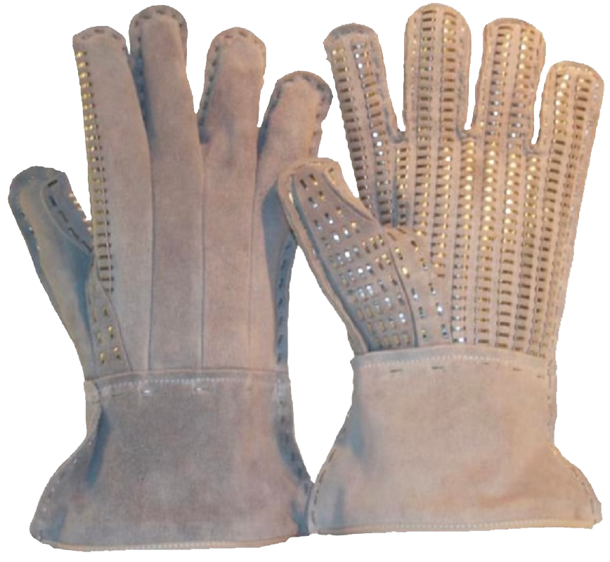 - Palm and palm side of fingers/thumb are reinforced w/ leather strips stapled one-qtr inch apart.
