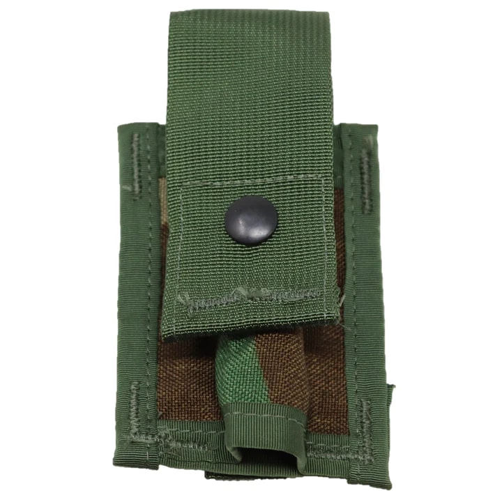 The pouch fits one 40mm grenade securely with a button snap flap.